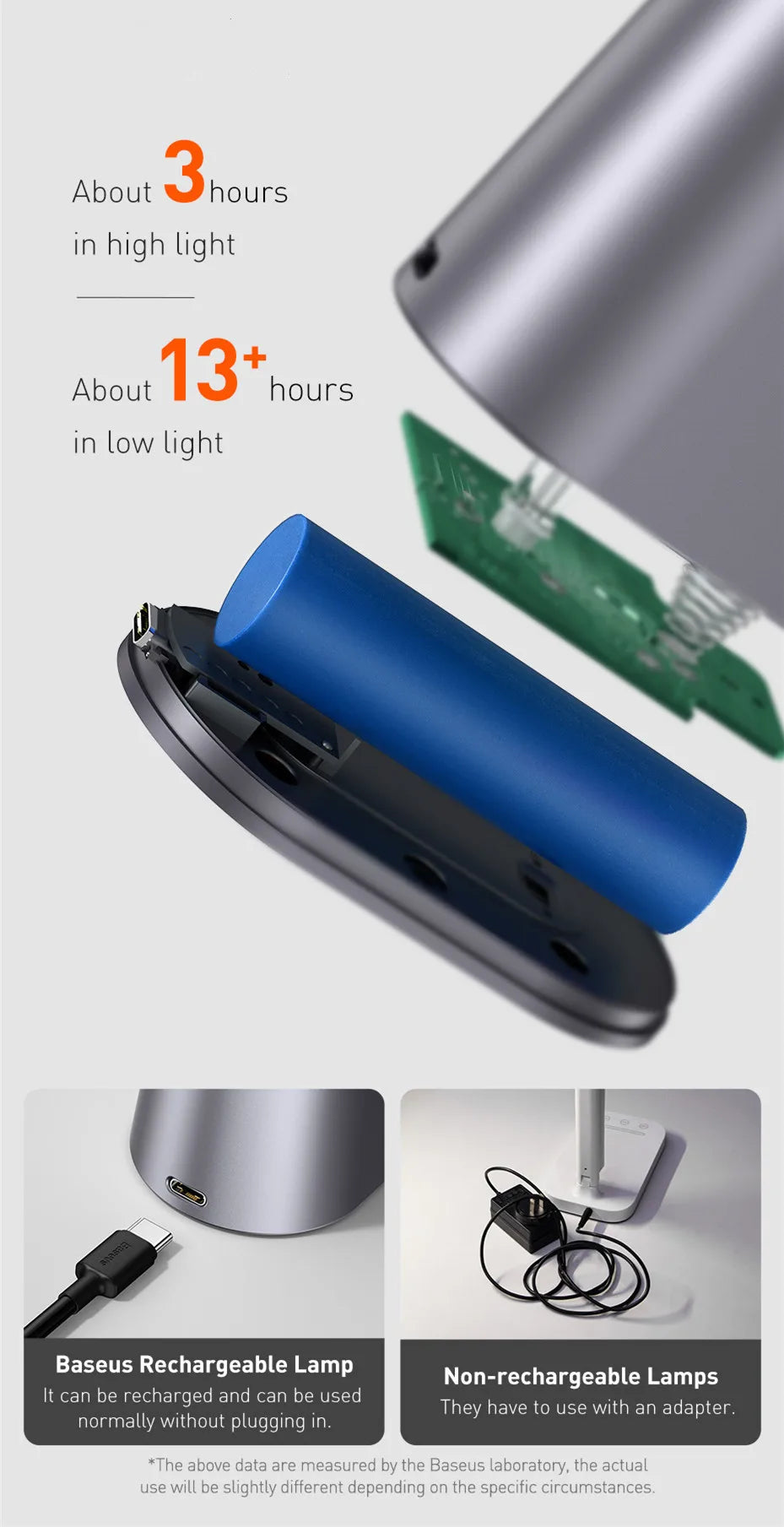 Illuminate your workspace with ease and elegance. The Baseus™ LED Desk Lamp features full-spectrum LEDs and smart auto-dimming, this lamp adjusts brightness to your environment for comfortable, eye-friendly lighting. Sleek, foldable, and cordless, it’s perfect for desks, bedside tables, or travel, offering up to 13 hours of uninterrupted illumination.👀 Smart Auto Dimming – Built-in sensor adjusts brightness automatically to prevent eye strain, providing comfortable lighting in any environment.
